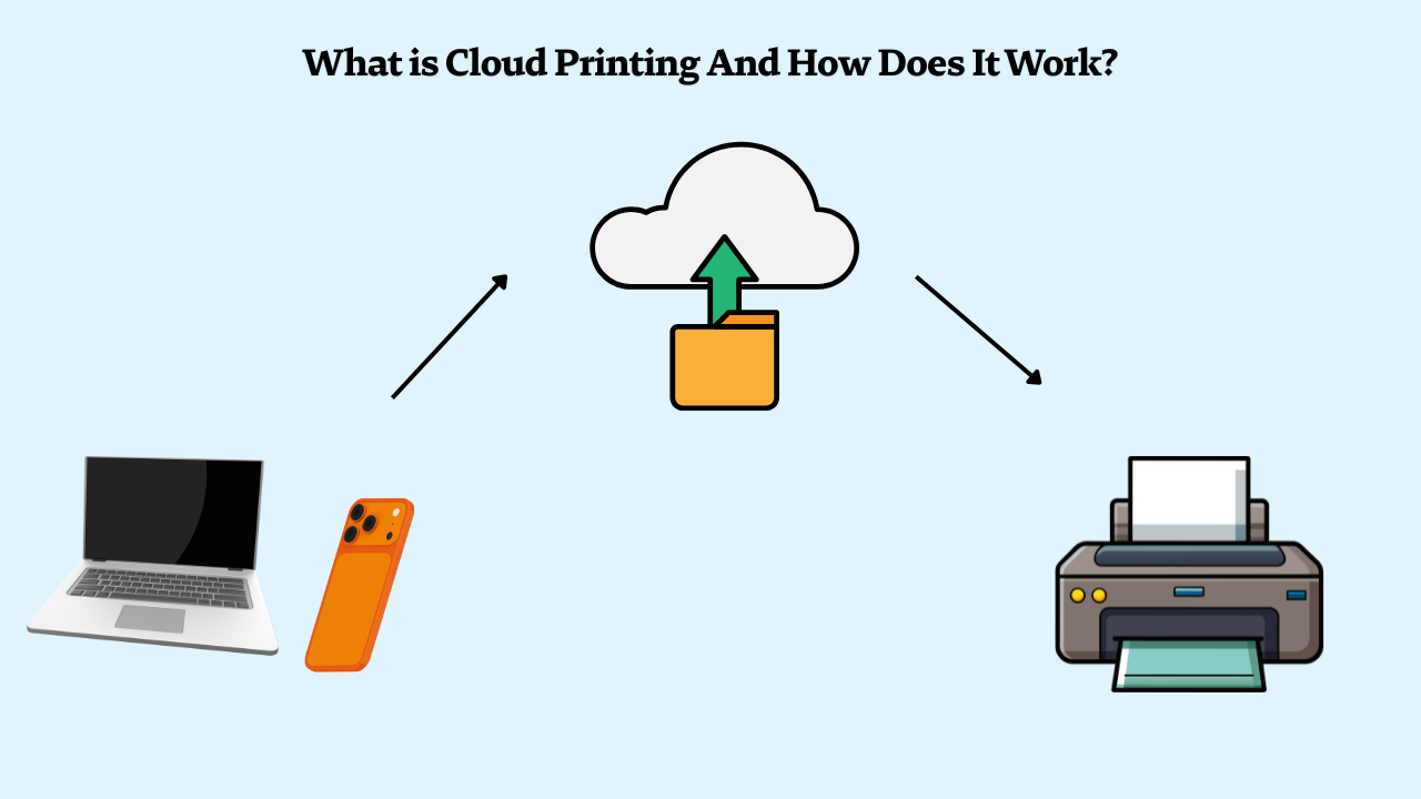 Cloud printing is a technology that lets users send documents to a printer over the internet instead of relying on traditional, on-site print servers. It allows employees to print from any approved device, whether they are in the office, at home, or on the move, while keeping documents secure and workflows efficient.