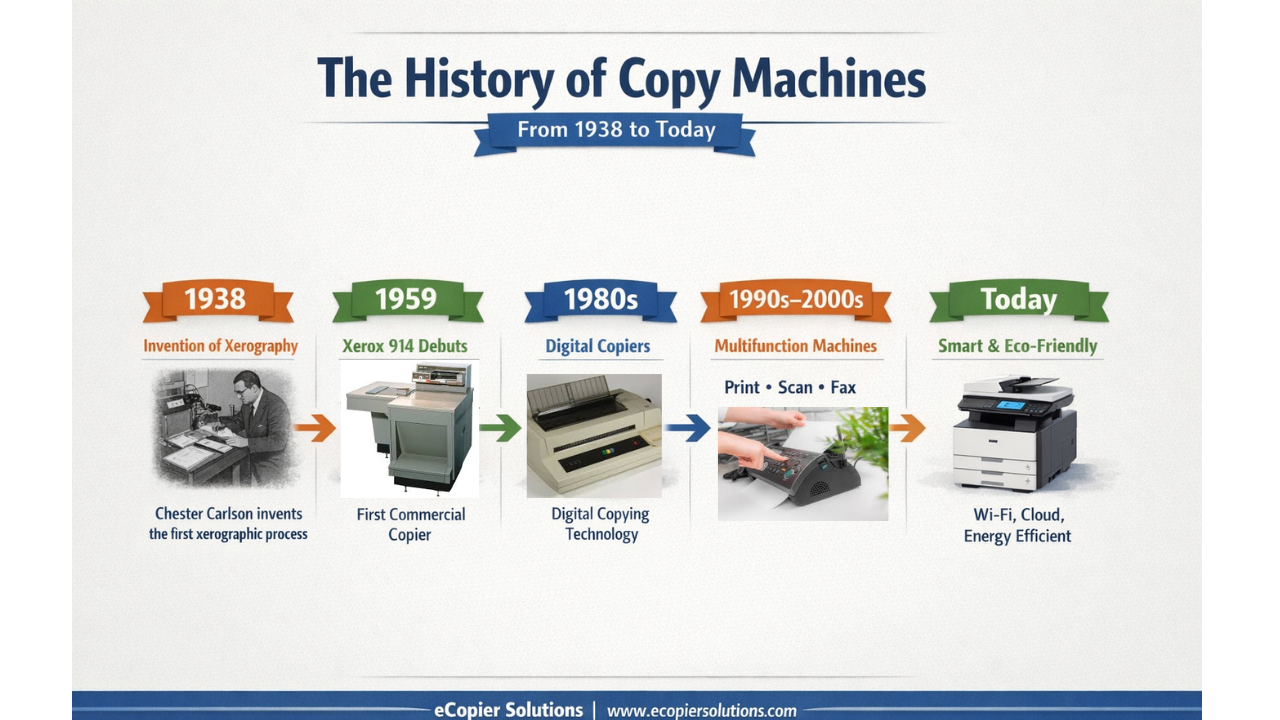 In this article, we’ll explore when copy machines were invented, the major milestones that shaped modern copiers, and what this history means when you’re choosing equipment today.